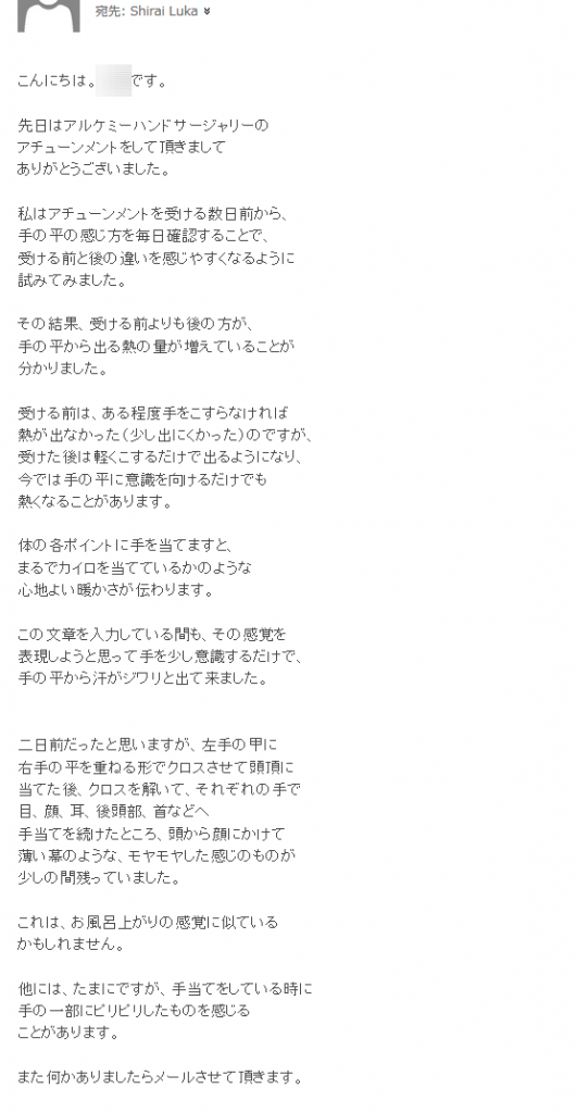 セルフマッサージで全ての運をUP!アルケミーハンドサージャリーを受けたK.K様の感想を了承を得たうえでご紹介します。